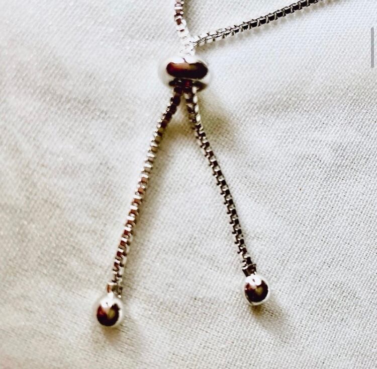 金具は、ギュッと上げ下げすればよいので、ネックレス金具のようなカニカンより簡単に装着でき、かつ、気が付かない間に外れて無くしてしまう(磁石タイプの留め具だと、金属の椅子にくっついたりして無くしがち)ということはありません。